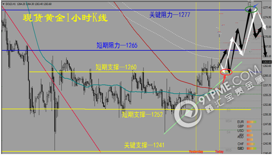 (1)关注1258-1260美元做多,止损1254美元,目标1265-1270-1276美元。