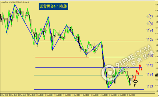 现货黄金今日(12月20日)以1131.90美元开盘,早盘看盘震荡上涨,昨日先跌后涨,日线报收下影线很长中阴线,显示出一定的支撑力度,今日操作黄金保持低多为主区间思路,关注1142美元和1150美元的阻力,白银低多为主,关注15.90美元附近支撑。
