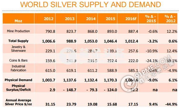 事实上,白银投机性的购买量占了2016年生产量的近14%。根据CFTC的数据显示,在去年投机者把他们的净多头头寸升至4547吨。从下图可以看出,这才是去年白银需求量的最大贡献者。