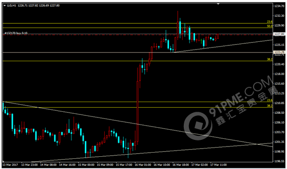 尽管美联储周三宣布加息后,并发表偏向鸽派的言论,但也无法完全抹掉近期美国强劲经济数据对金市带来的影响。另外,荷兰大选落幕,现任总理吕奇击败威尔德斯,扼杀民粹主义抬头迹象,打压市场避险情绪,从而抑制了金价进一步反弹。