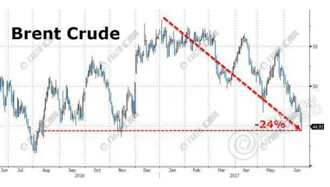 近期油价持续上演暴跌行情,引发投资者对美国通胀低迷的担忧。WTI原油期货昨日(6月21日)收跌0.98美元,跌幅2.25%,报42.53美元/桶。布伦特8月原油期货收跌1.20美元,跌幅2.61%,报44.82美元/桶。