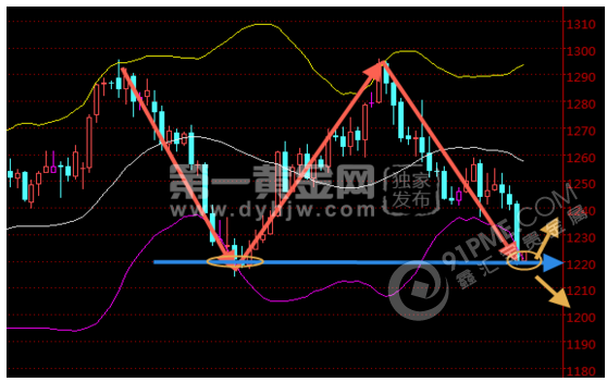 技术面分析:从黄金价格日线级别来看,黄金录得3根阴线,有持续下跌的趋势,绿柱放量,布林带中下轨向下,这些都表明黄金在短时间内仍然会保持空头的趋势。具体来看,金价试探站稳1220,若下破则有望触底1210,建议以高空为主。