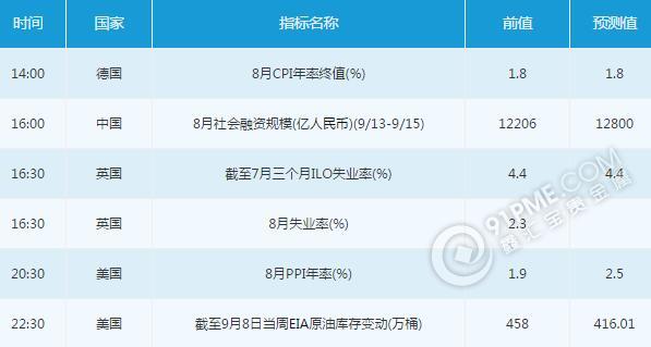 而英国8月CPI数据好于预期以及周四(9月14日)英国央行会议的临近,致市场对英国央行加息预期上升,推动英镑大涨。而这也是抑制美元回升的主要因素。
