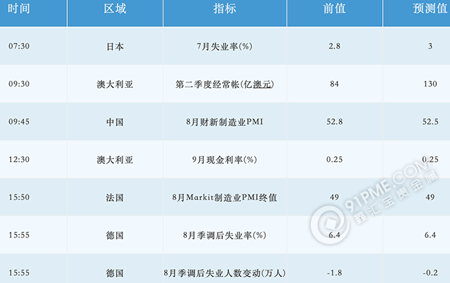 商品收盘方面,COMEX 12月黄金期货收涨0.2%,报1978.60美元/盎司,12月白银期货上涨80美分,涨幅2.9%,收于每盎司28.594美元;按照最活跃合约计算,在整个8月份,黄金期货下跌约0.4%,白银期货上涨约18%。WTI 10月原油期货收跌0.36美元,跌幅0.84%,结算价报42.61美元/桶;11月交割的布伦特期货原油期货下跌53美分,结算价报每桶45.28美元。