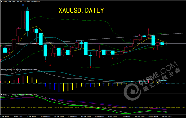 周四(4月21日)美元指数从一周低位大幅回升,此前美联储主席鲍威尔表示,50个基点的加息将在5月份的会议上讨论,FOMC略微加快行动步伐是适宜的。随着美股大跌,现货黄金尾盘跌幅收窄,收于1950关口上方,此前一度刷新4月8日以来低点至1936.60美元/盎司。美债收益率上升和美元走强给金价带来压力,投资者预计美联储将大幅收紧政策。