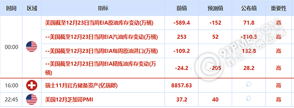 美国劳工部周四表示,在截至12月24日的一周内,初请失业金人数增加9,000人,经季节性调整后为22.5万人,与路透调查经济学家的预估中值一致。Blue Line Futures首席市场策略师Phillip Streible表示,就业数据导致美元有所疲软,美债收益率回落,推动黄金逆转走势,他补充称,由于圣诞节和新年假期,市场交易量稀少;美国10年期国债指标收益率在上一交易日触及六周高位后有所回落。