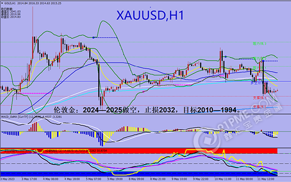 日线级别:震荡;MACD粘合,KDJ粘合,上一交易日录得类似十字星K线,布林线轨道接近水平运行,短线走势缺乏明确方向,短线留意2007.55-2049.01区域突破情况,分别是布林线中轨支撑和布林线上轨阻力,鉴于隔夜金价受到布林线上轨压制,MACD之前也发出了顶背离信号,高位的类似“黄昏之星”顶部信号仍未被破坏,短线金价略微偏向震荡下行。下方初步支撑在10日均线2021.08附近,周一低点支撑在2014.36附近,布林线中轨支撑在2007.55附近,若失守该支撑,则增加短线看空信号。若金价能够坚守10日均线支撑,并顶破布林线上轨2049.10附近阻力,也可以参考2050关口,则有望打开新的上涨空间,并向历史高点发起冲击。