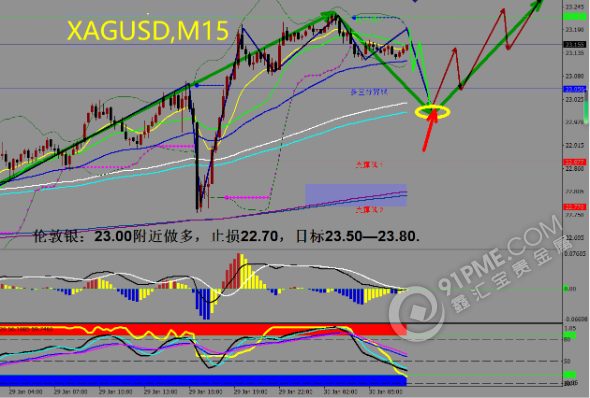 (1)关注23.00附近做多,止损22.70,目标23.50—23.80。