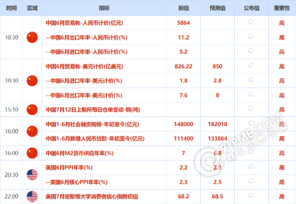 今日(7月12日)关注数据: